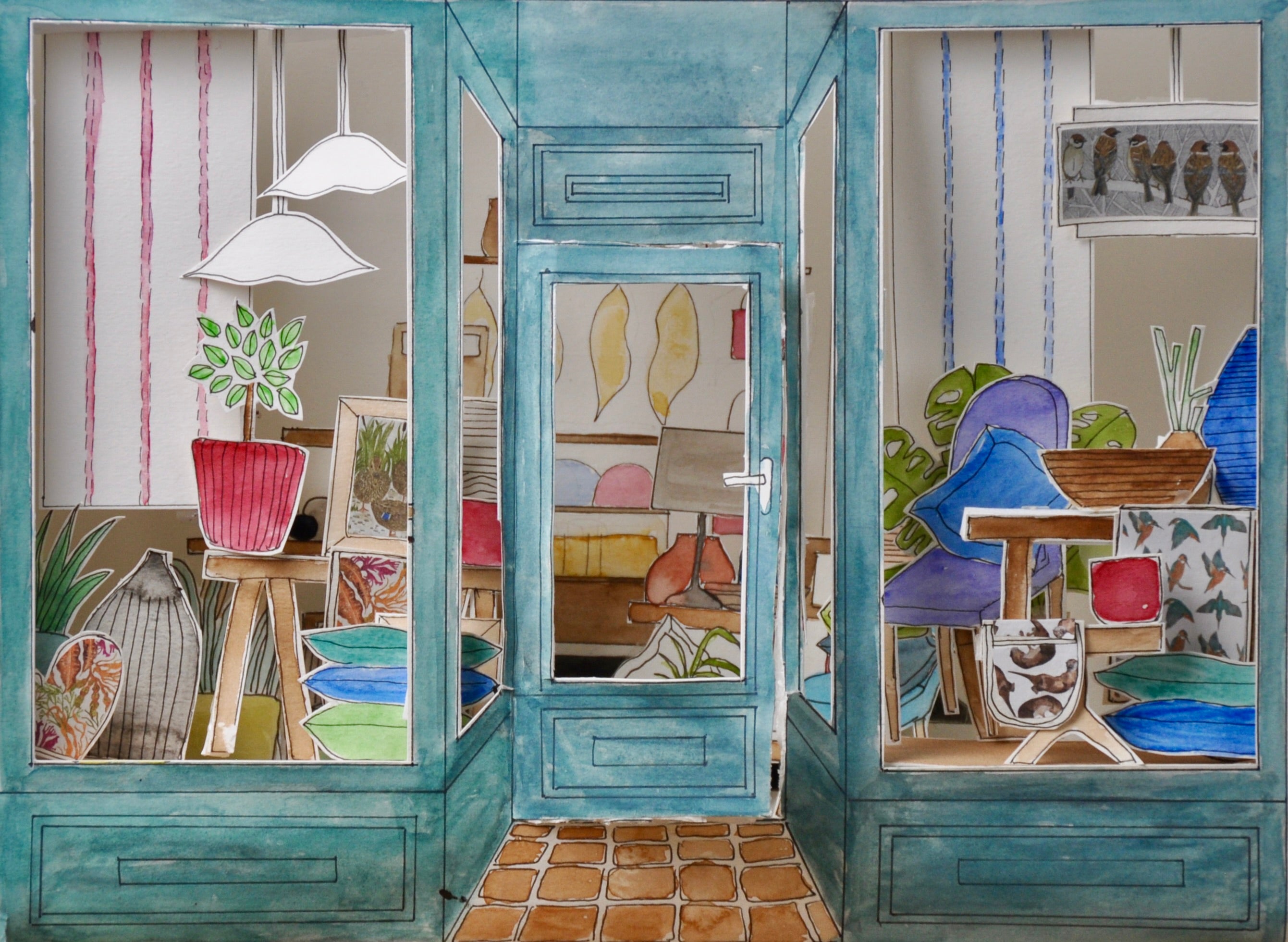 Each pattern begins as a hand-painted study, sketched outdoors and finished in the studio. From these originals grow designs that travel easily between paper, fabric and print — for wrapping, furnishing, gifting and illustration.