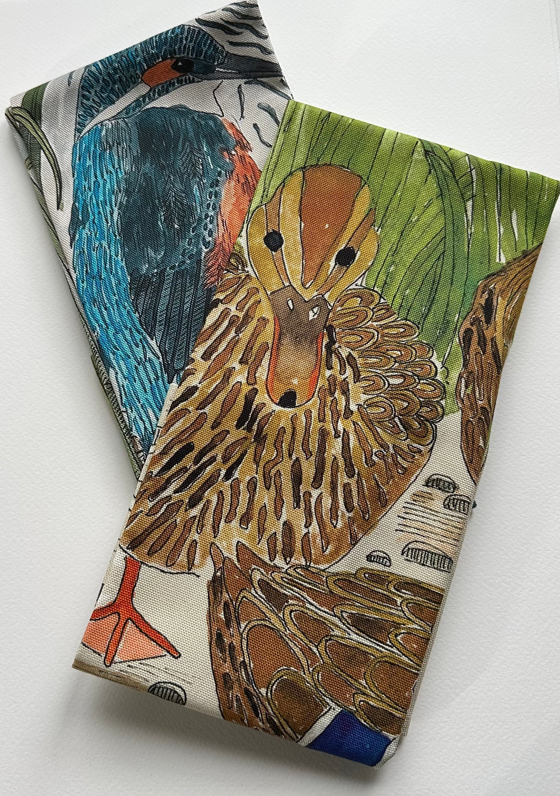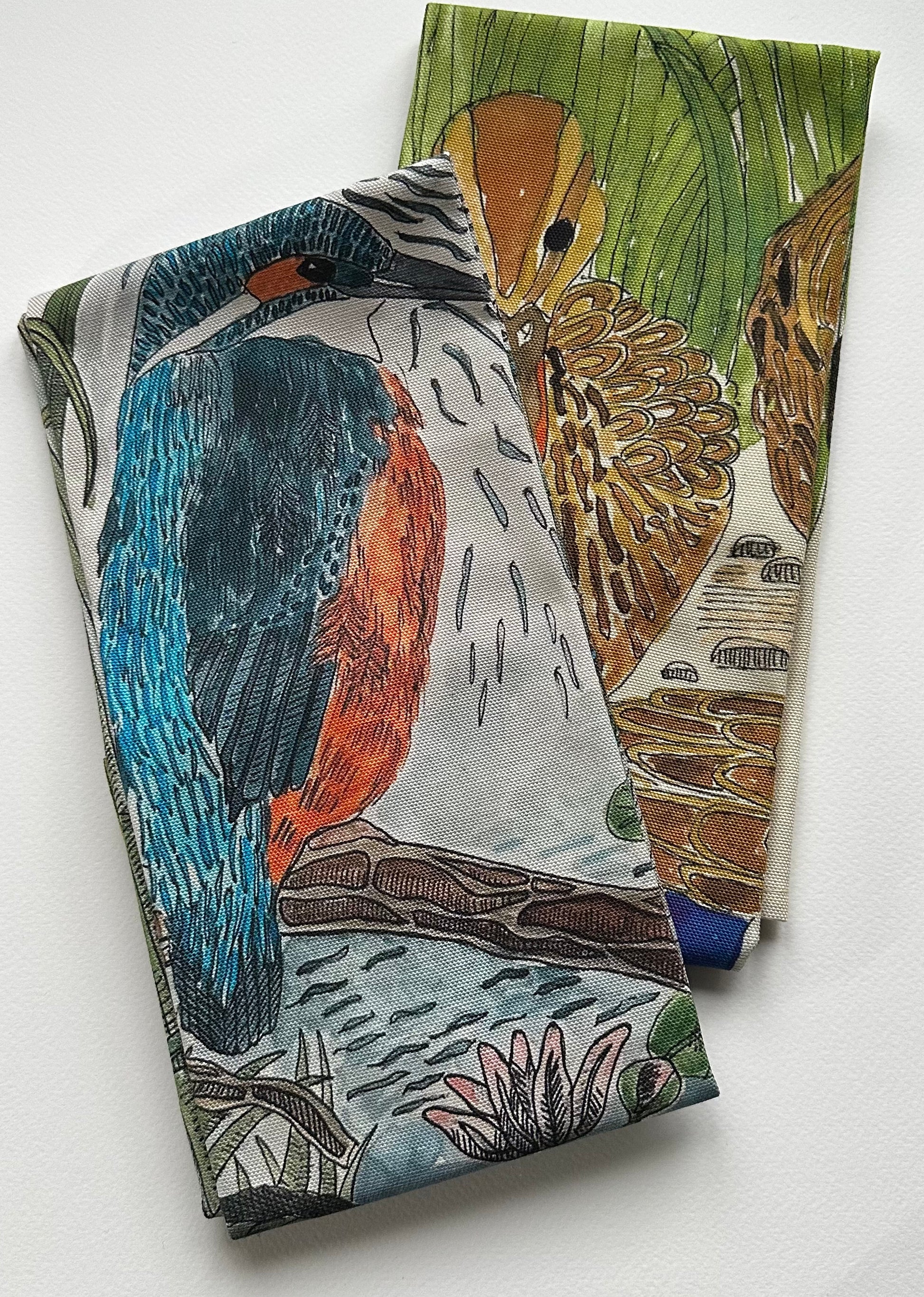 Each design begins as an original illustration, carefully reproduced and printed onto high-quality cotton tea towels to capture the colour, detail, and character of the artwork. The vibrant kingfisher and gentle mallard make a beautifully balanced pair, both decorative and practical.