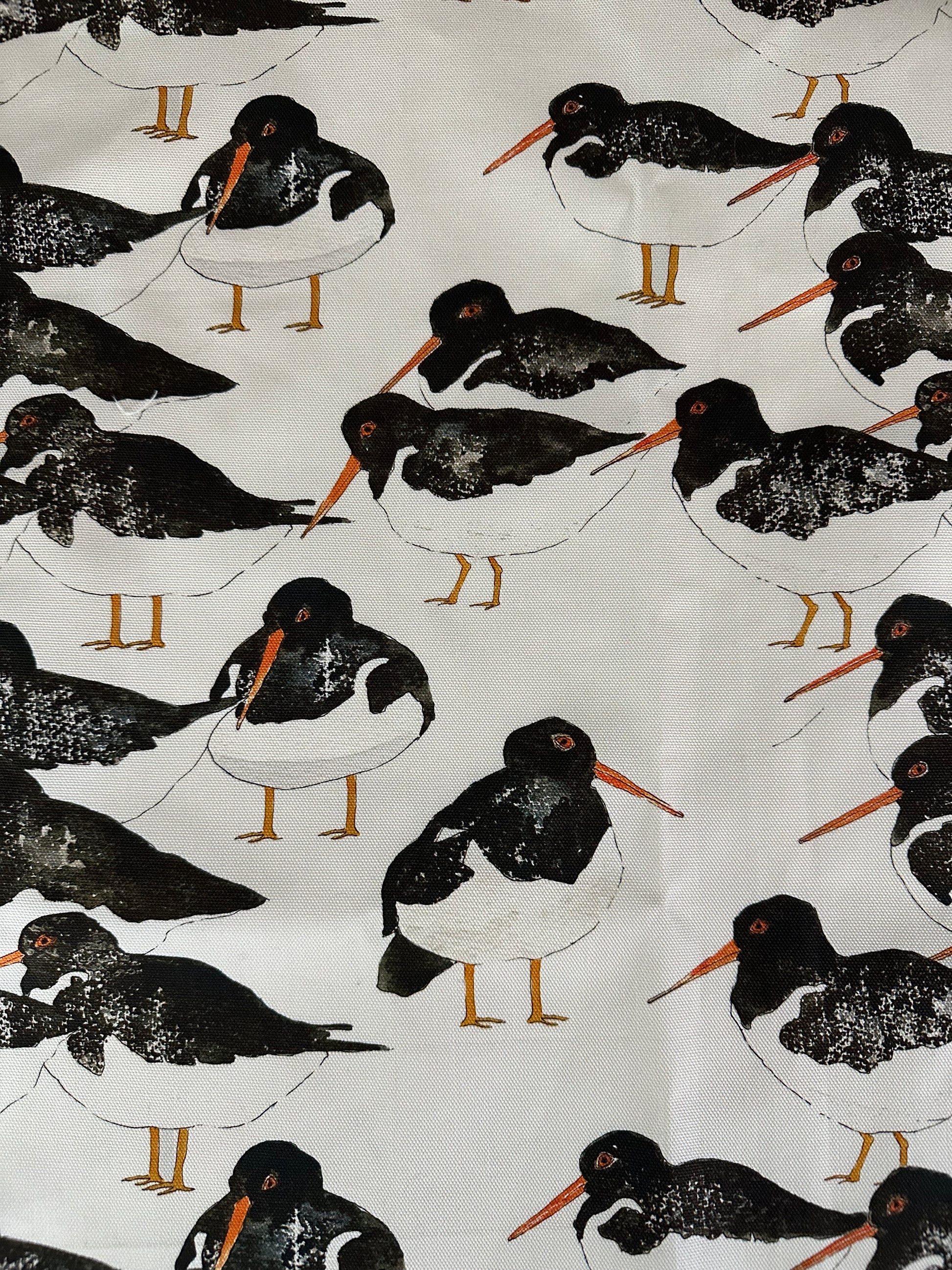 Bring the vibrant spirit of England's coastline into your home with our oystercatcher design. These striking black and white birds with their bright orange bills are a familiar sight along our rocky shores and sandy beaches. Our detailed illustration captures the playful character of these charismatic birds as they patrol the tideline of our beloved British seaside.